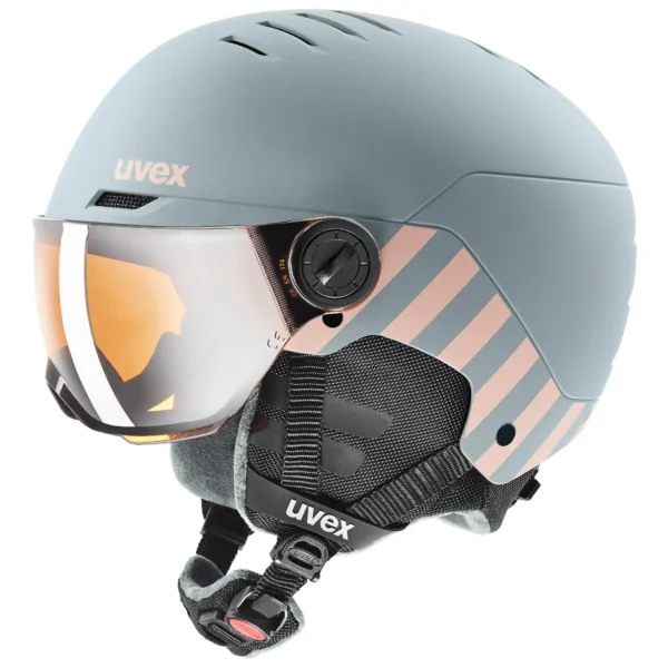 Pistenflitzer aufgepasst: Mit dem neuen, clean designten uvex rocket jr. visor kommt ihr garantiert groß raus. Seine innovative Hardshell-Konstruktion überzeugt mit kompromisslosem Schutz: die robuste Außenschale ist schlagfest, die innere EPS-Schale dämpft und wirkt zusätzlich kälteisolierend. Damit auch bei der wildesten Abfahrt kein Hitzestau entsteht, strömt durch das passive Belüftungssystem permanent frische Luft durch den Helm. Statt einer Skibrille sorgt das große leicht verspiegelte Visier mit kontraststeigernder lasergold lite Tönung und uvex supravision® Anti-Fog Beschichtung für perfekten Durchblick. Die Komfort-Polsterung mit Neckwarmer garantiert ein super angenehmes Tragegefühl.