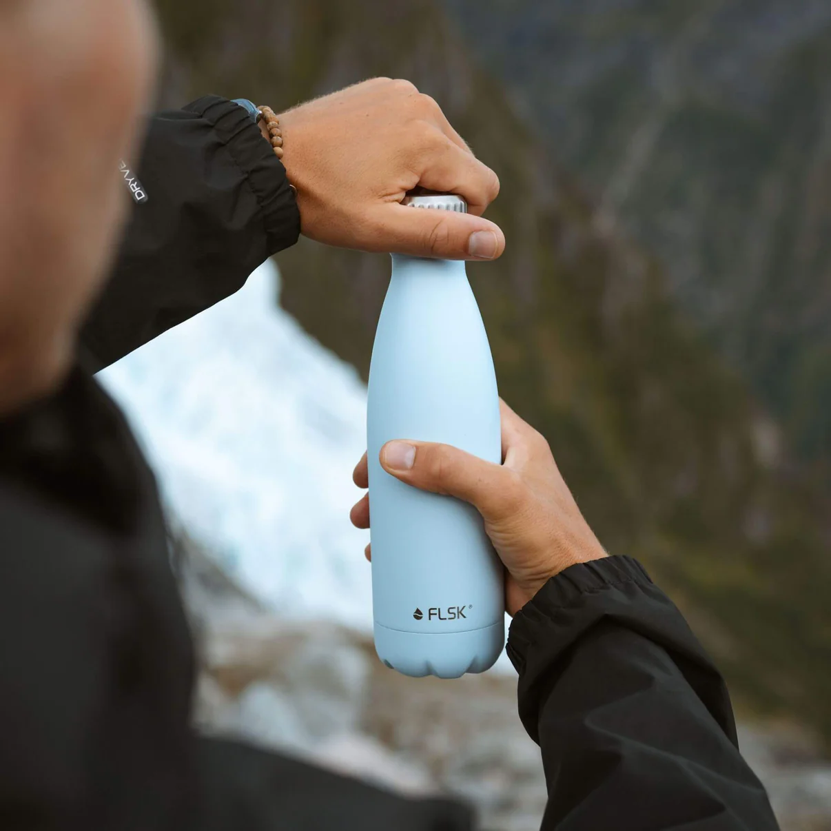 FLSK Trinkflasche polar: Kristallklar und unerschütterlich.