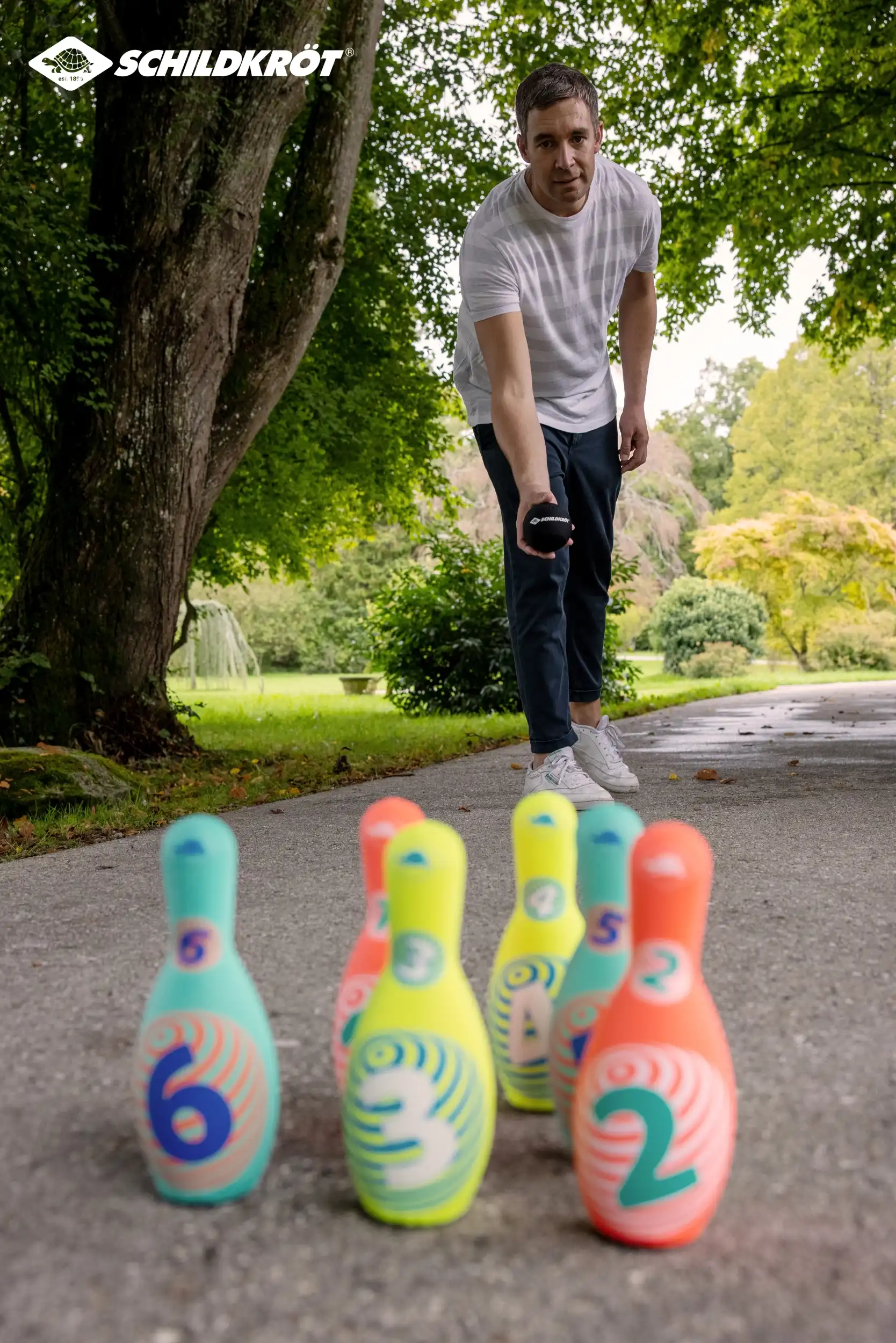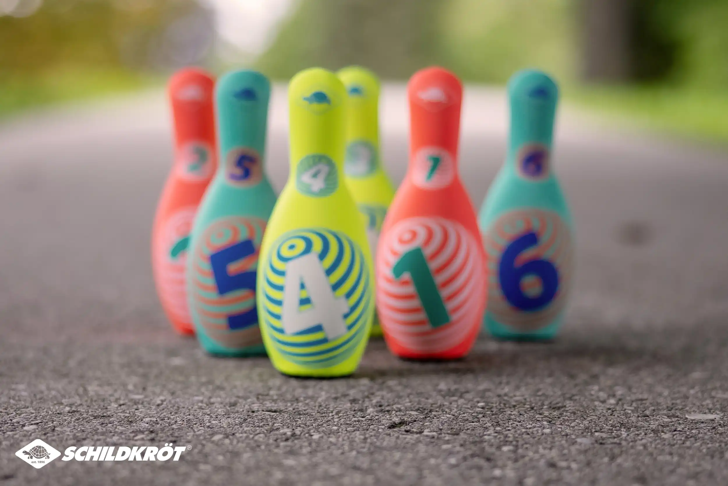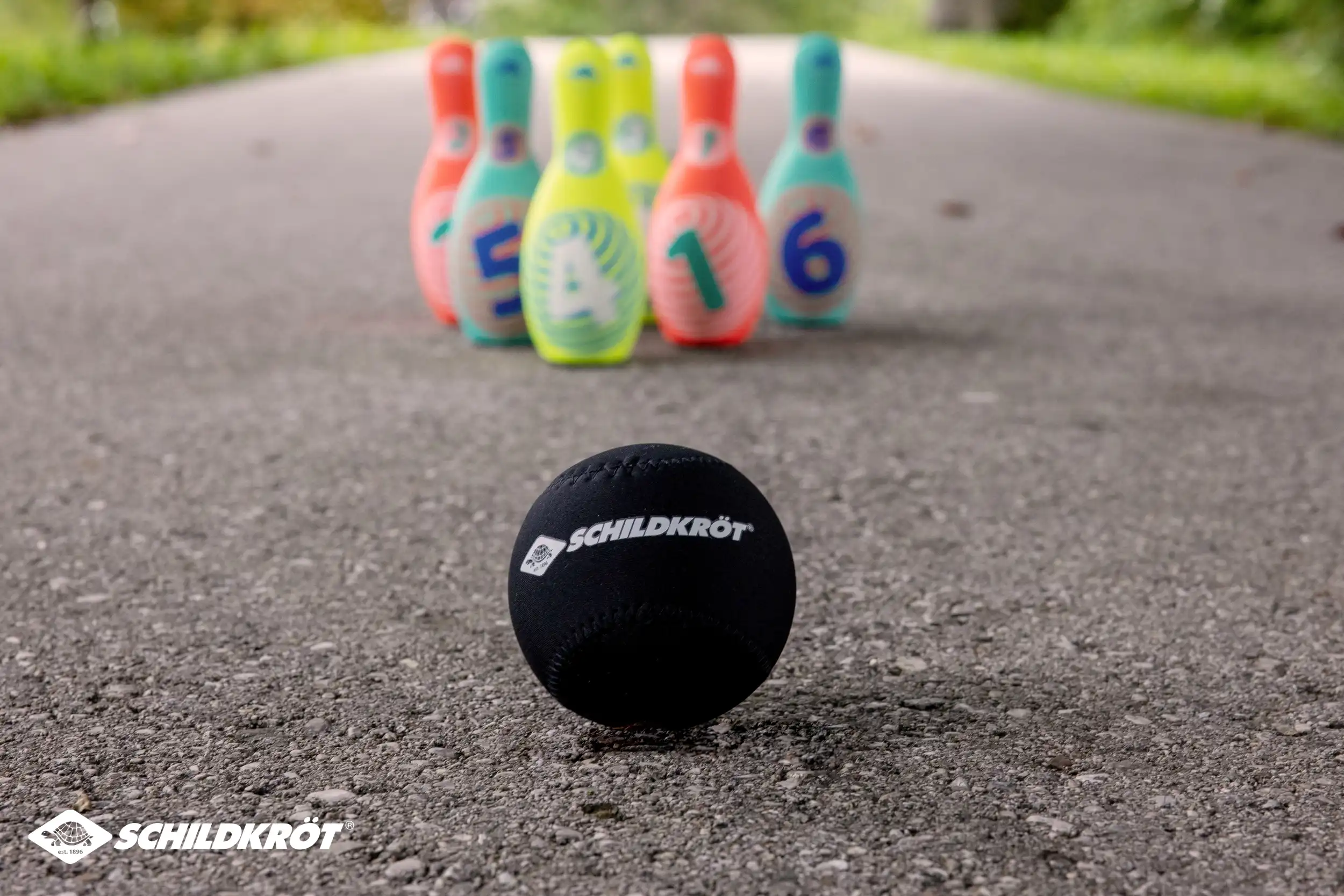 Das sehr beliebte Neopren-Kegelset aus dem Hause Schildkröt im neuen Design ist die spielende Heranführung an das Thema Kegeln. Die leichten, mit griffigem Neopren ummantelten Kegel (21,5 x 8 cm) haben eine ausreichend große Standfläche und stehen gut. Der hohle Kunststoffkern ist ein idealer Kompromiss bzgl. des Gewichtes. Zu leicht, bleiben die Kegel nicht stehen, zu schwer ist es nichts für die Kids! Im Set sind 6 Kegel in 3 verschiedenen Farbstellungen. Mit dabei ist außerdem eine "Kugel" ebenfalls aus Kunststoff und Neopren-ummantelt. Alle Teile passen in die beiliegende, wiederverschließbare Netztasche. So bleibt alles zusammen und man hat beim nächsten Spiel sofort wieder alle Teile zur Hand. Alle Teile sind salzwasserfest; auch einem Spiel am Sandstrand steht also nichts im Wege. Das weiche, leichte, wasserfeste Kegelset ist der ideale Begleiter für Pausenhof, Garten, Wohnzimmer, Schule, Park, Garten. Ideal für Jung und Alt. ACHTUNG! Verpackung vor Abgabe des Produktes an Kinder vollständig entfernen. Über Schildkröt: Die über 100 Jahre alte deutsche Marke Schildkröt gilt als Erfinder des Tischtennisballs. Heute bietet Schildkröt neben Tischtennis auch eine sehr umfangreiche Funsport-, Rollsport- und Fitness-Kollektion an und gilt in gewissen Bereichen als Marktführer. Die Produktentwicklung erfolgt ausnahmslos in Deutschland. Die weltweiten Produktionsstätten werden streng überwacht und genügen höchsten Sozialstandards.