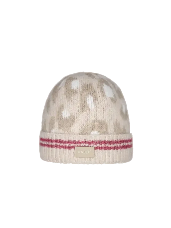 Gemusterter Mädchenhut mit den Eigenschaften: Kindermütze mit Leopardenmuster; 97% recyceltes Polyester; Weich im Griff und am Kopfband mit Fleece gefüttert für zusätzlichen Komfort und Wärme; Bezugshöhe: 6,5 cm bei Größe 53 und 7 cm bei Größe 55; Perfekt kombinierbar mit dem Dahlea Col