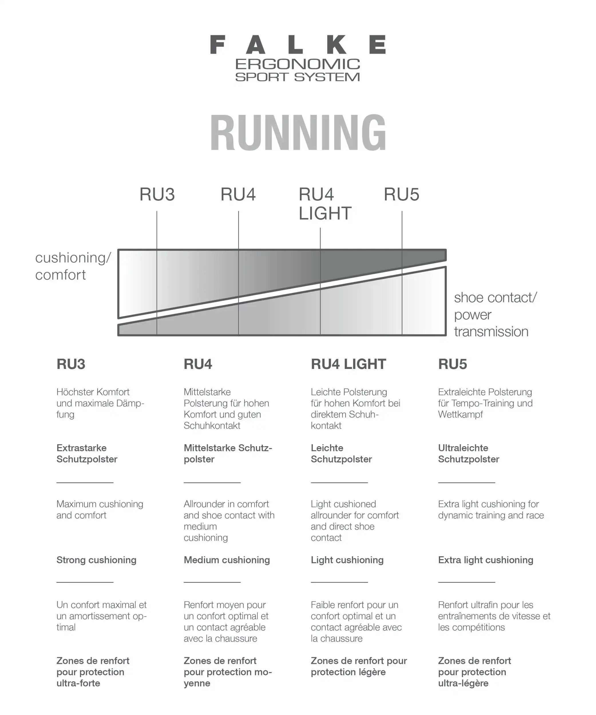Mit ihrer mittelstarken Polsterung ist die Laufsocke "RU4" unsere Allrounder-Socke für Damen. Sie sorgt für ausgewogenen Schutz bei mittlerer Dämpfung sowie guten Schuhkontakt. Die Polsterung bietet außerdem Schutz vor Blasen durch Reduzierung der Druckstellen. Schneller Feuchtigkeitstransport sowie die optimale Passform garantieren angenehme und sportliche Jogging-Einheiten.