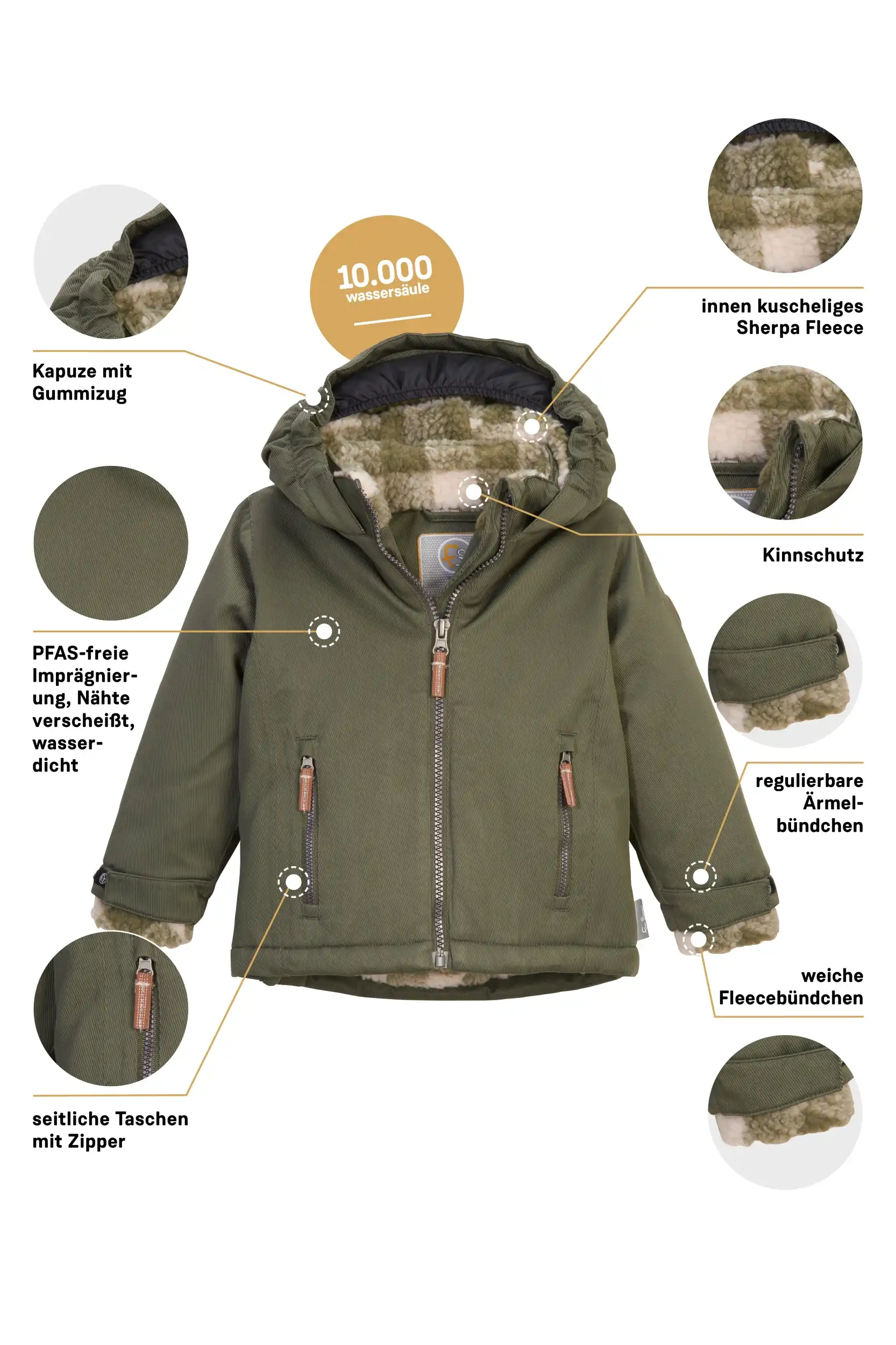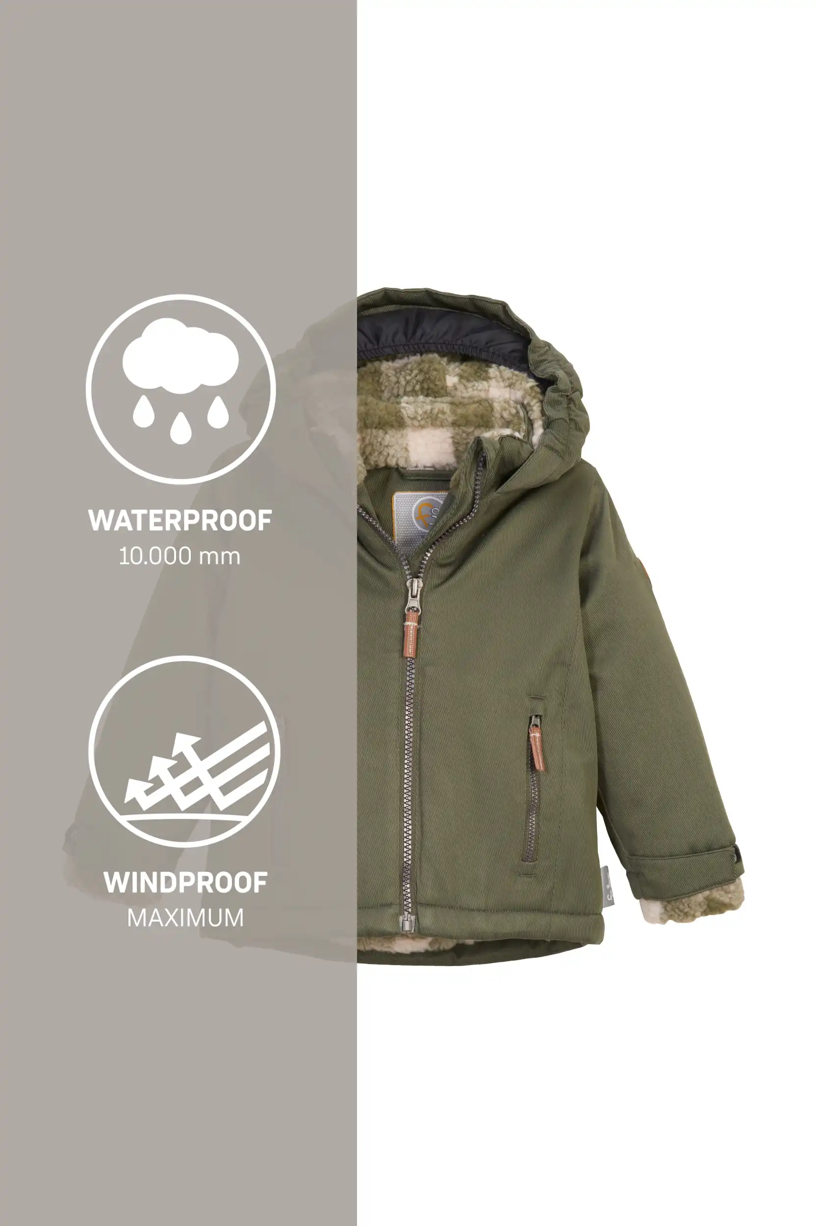- Weiches Fleece im Innenbereich und in der Kapuze