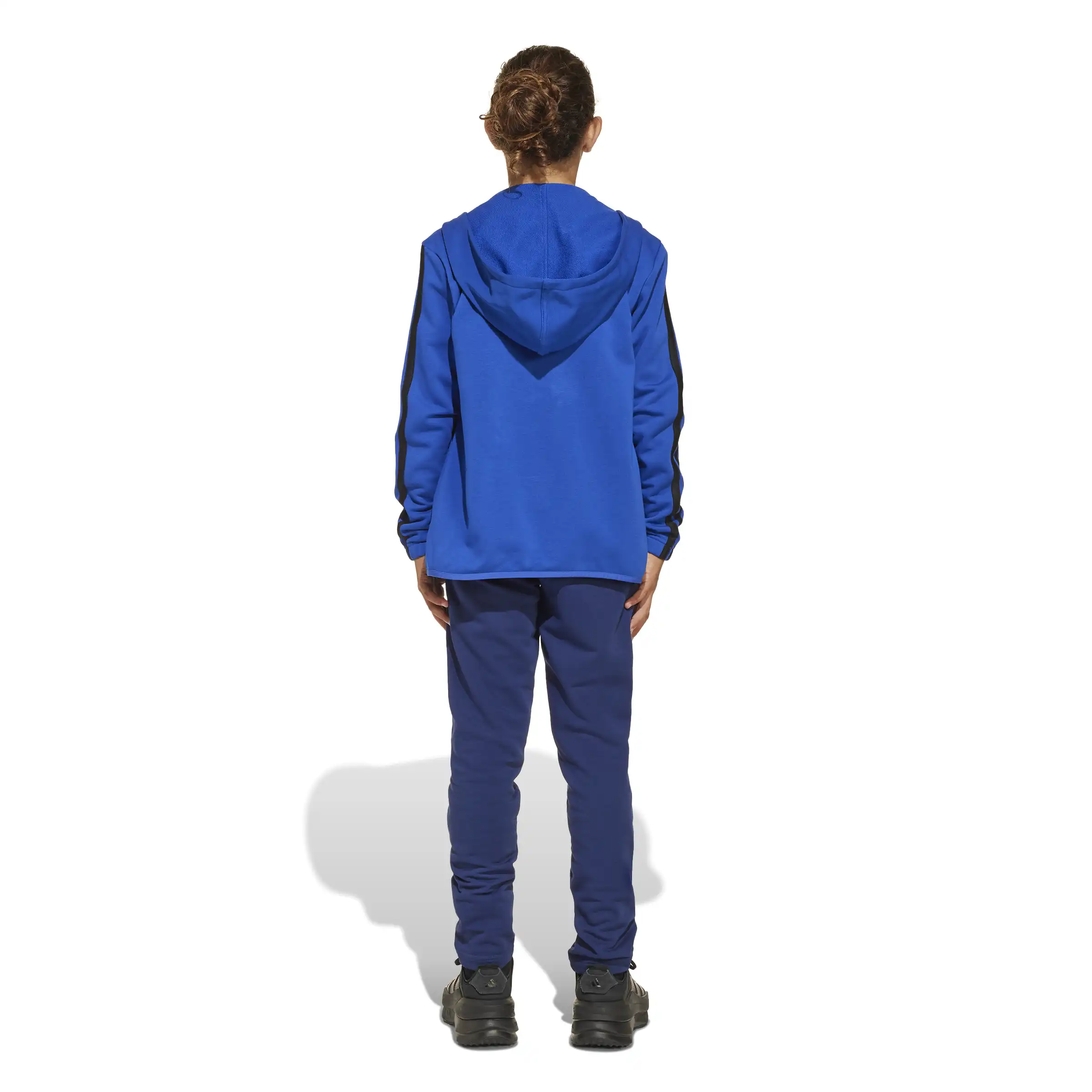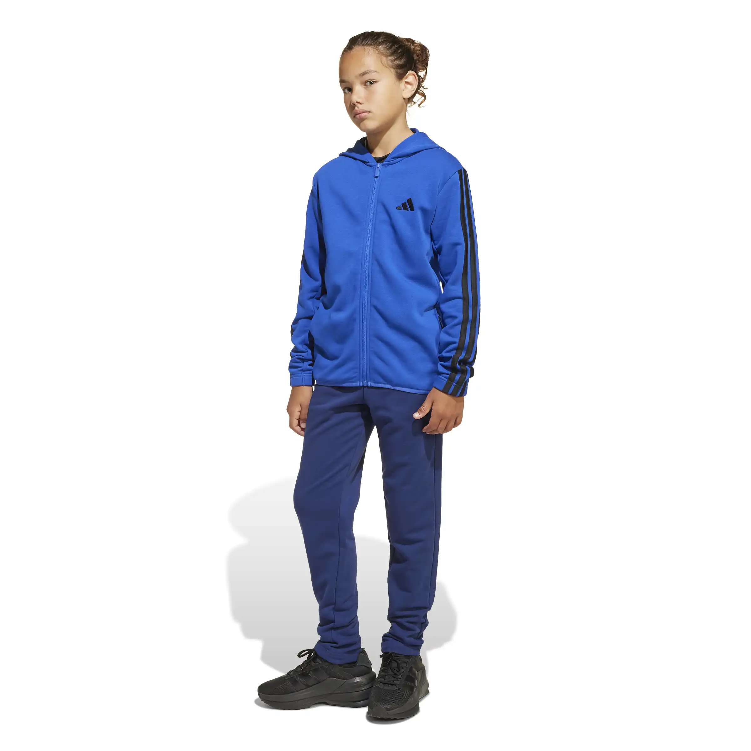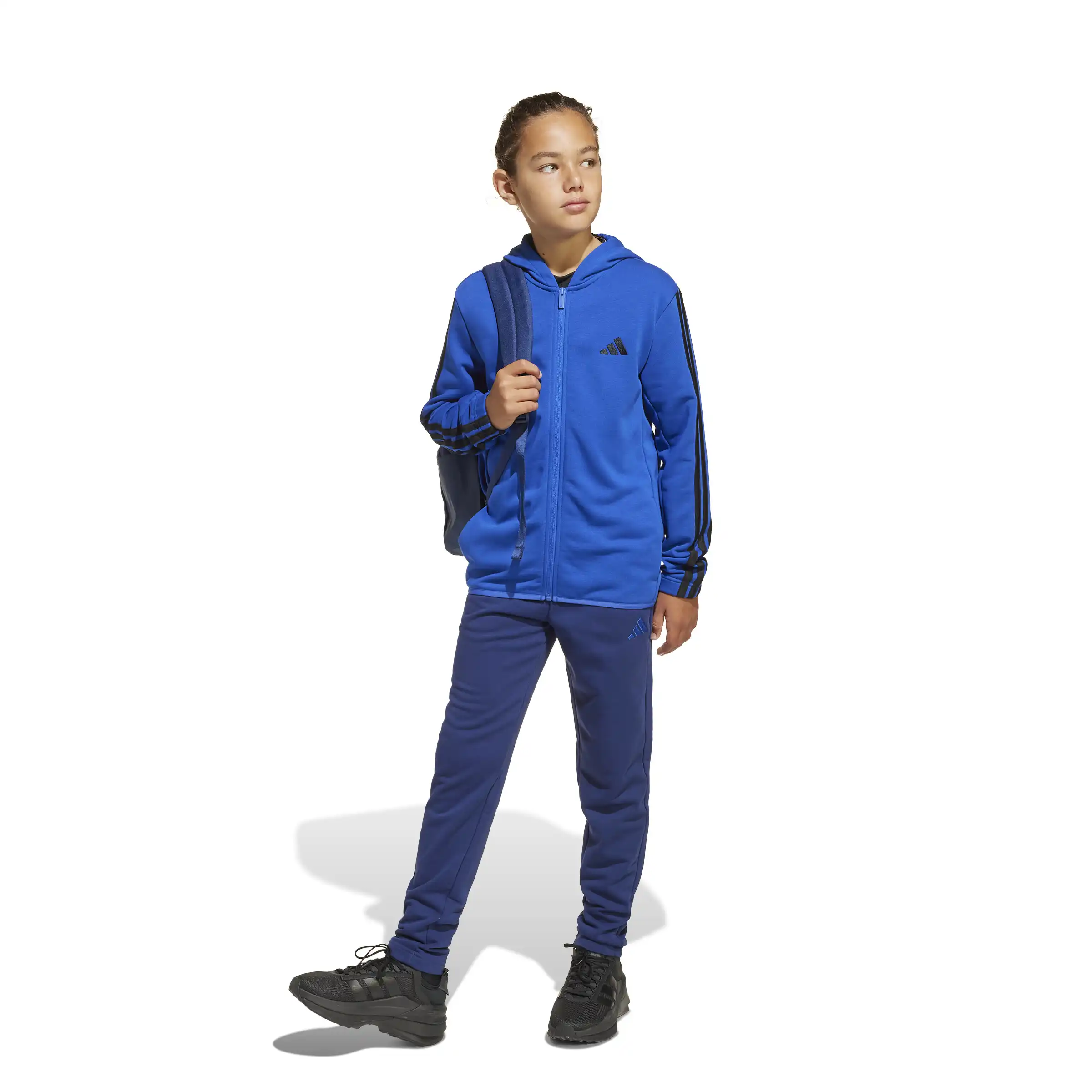 Bei diesem Trainingsanzug für Kinder und Teens dreht sich alles um Komfort. Das weiche French-Terry-Material ist perfekt zum Relaxen oder für leichte Aktivitäten. Durch den cleanen Look lassen sich die Kapuzenjacke und Hose solo zu anderen Pieces kombiniert oder aber klassisch als Set tragen. Die 3-Streifen Details verpassen dem Zweiteiler außerdem den typischen adidas Look. Durch den Einsatz von Recyclingmaterialien können wir bereits vorhandene Gewebe und Fasern wiederverwenden und so dazu beitragen, Müll zu reduzieren. Auch erneuerbare Materialien sind ein Weg, uns weniger abhängig von nicht erneuerbaren Ressourcen zu machen. Unsere Produkte, die mit einem Mix aus recycelten und erneuerbaren Materialien hergestellt sind, bestehen zu mindestens 70 % aus diesen Materialien.