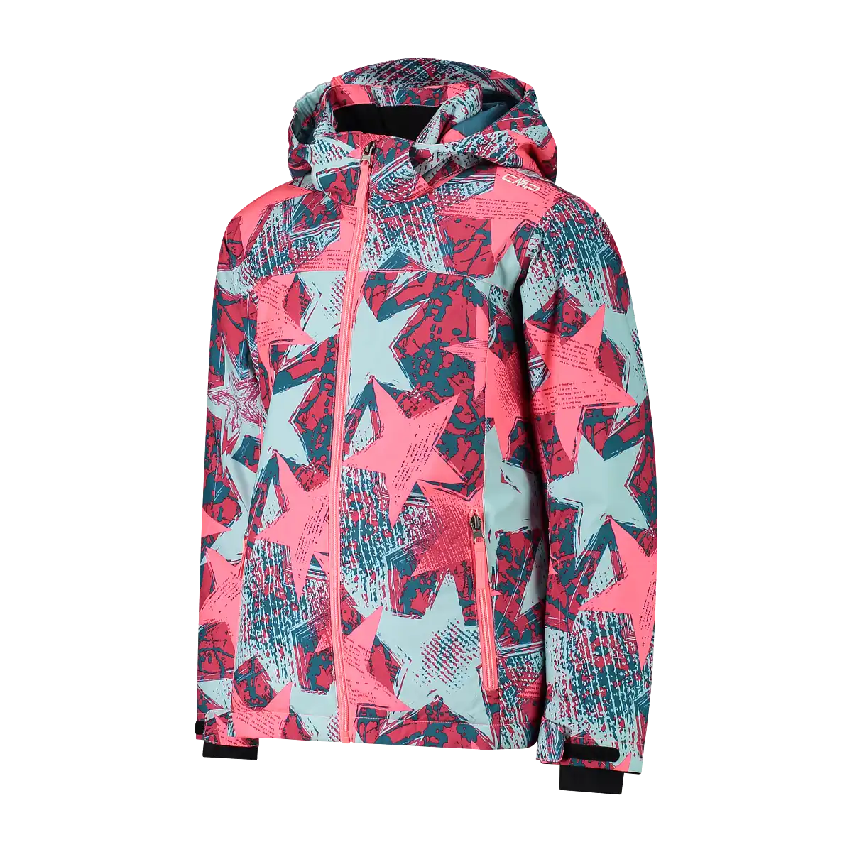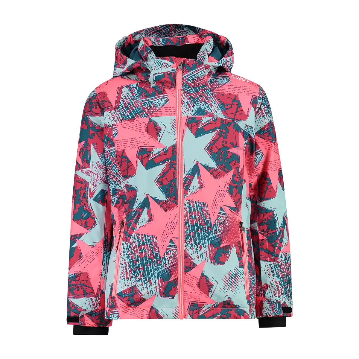Mädchen-Skijacke mit vollständig versiegelten Nähten und wasserdichter Clima-Protect-Membran, die Wasserdichtigkeit und Atmungsaktivität auch bei intensivem Skifahren gewährleistet. Abnehmbare Kapuze, zwei Seitentaschen mit Reißverschluss und Frontreißverschluss mit winddichter Klappe innen