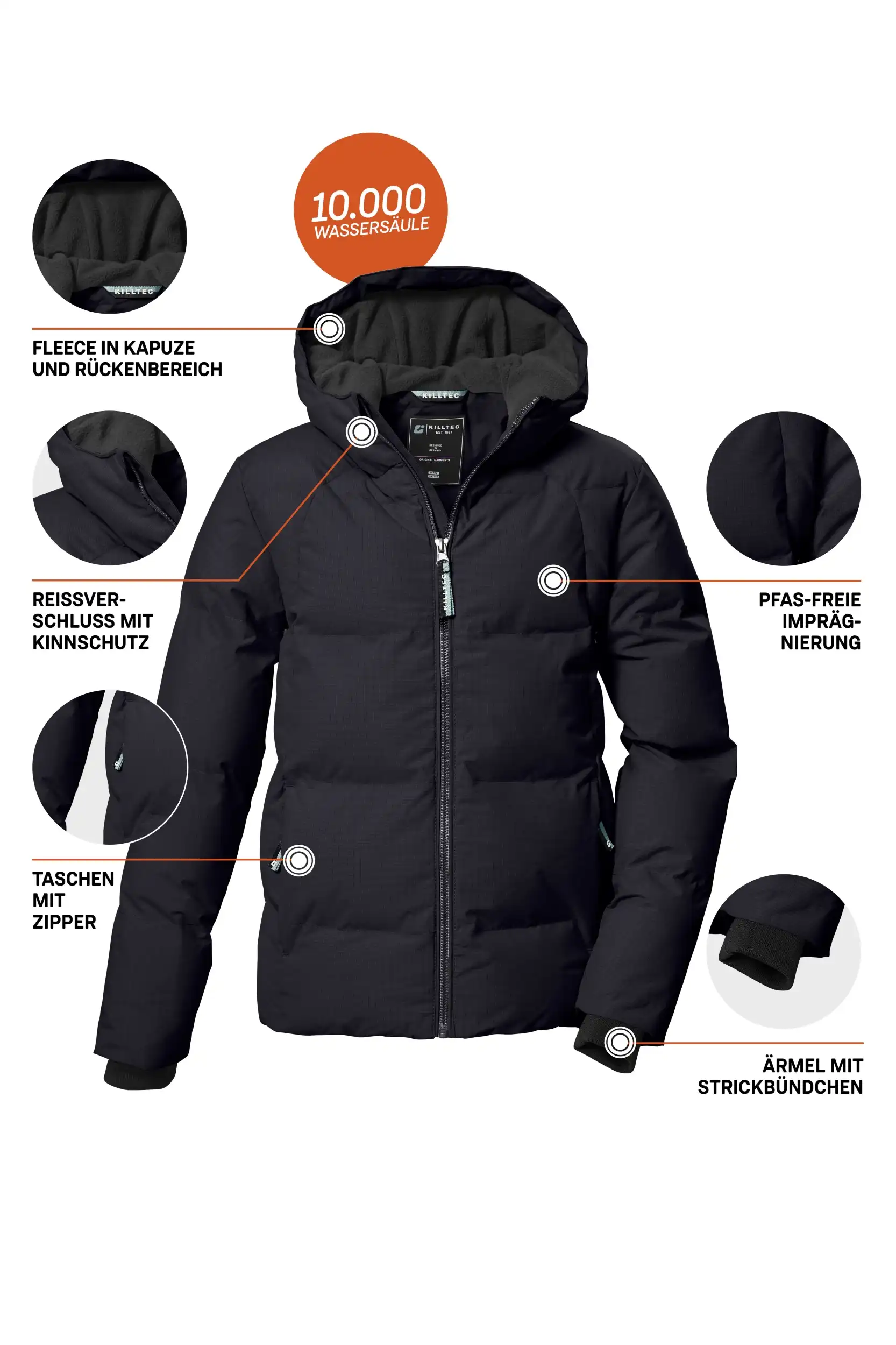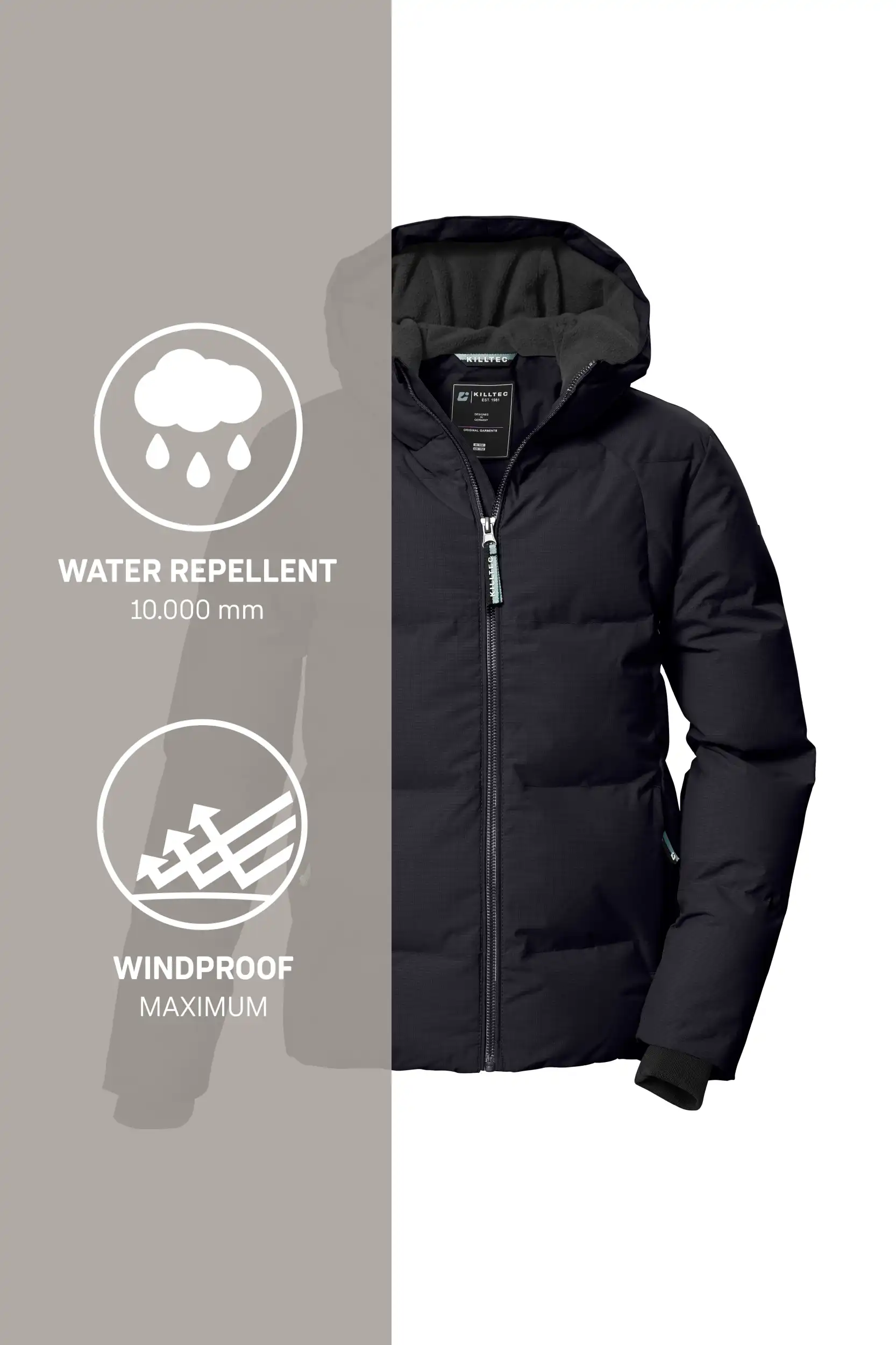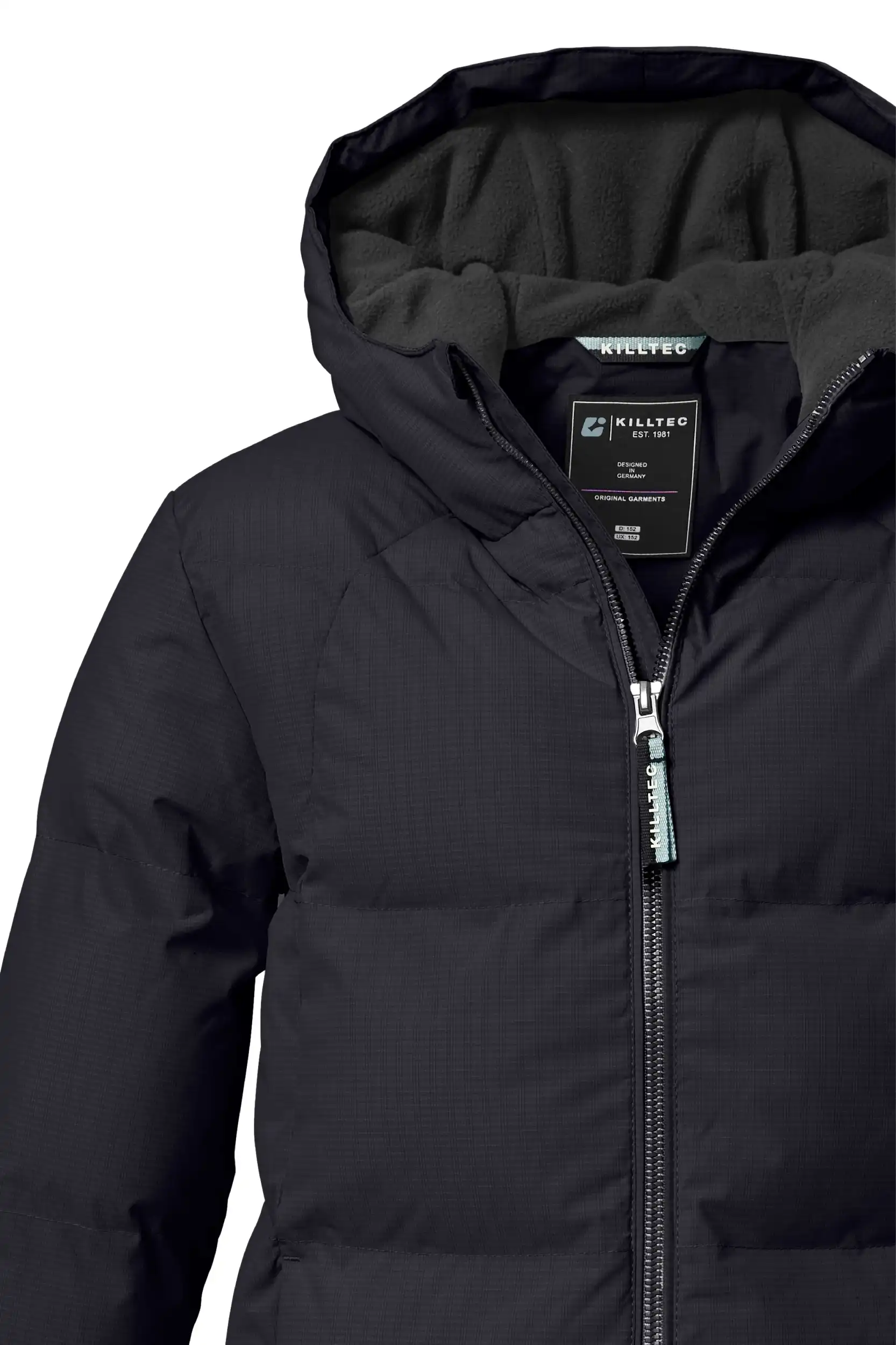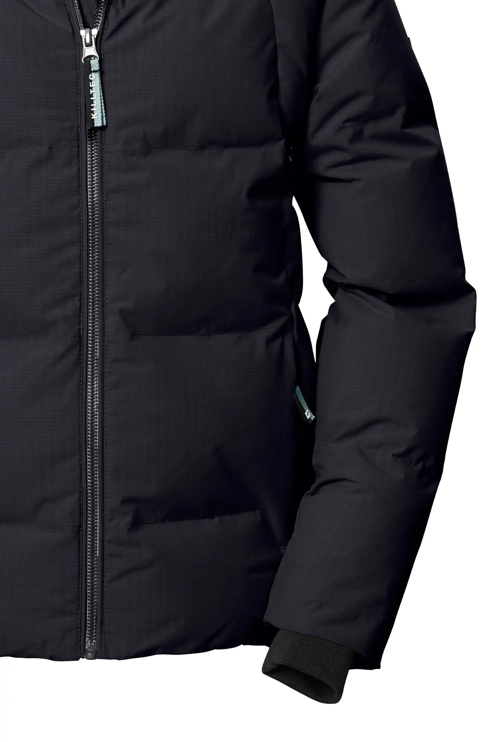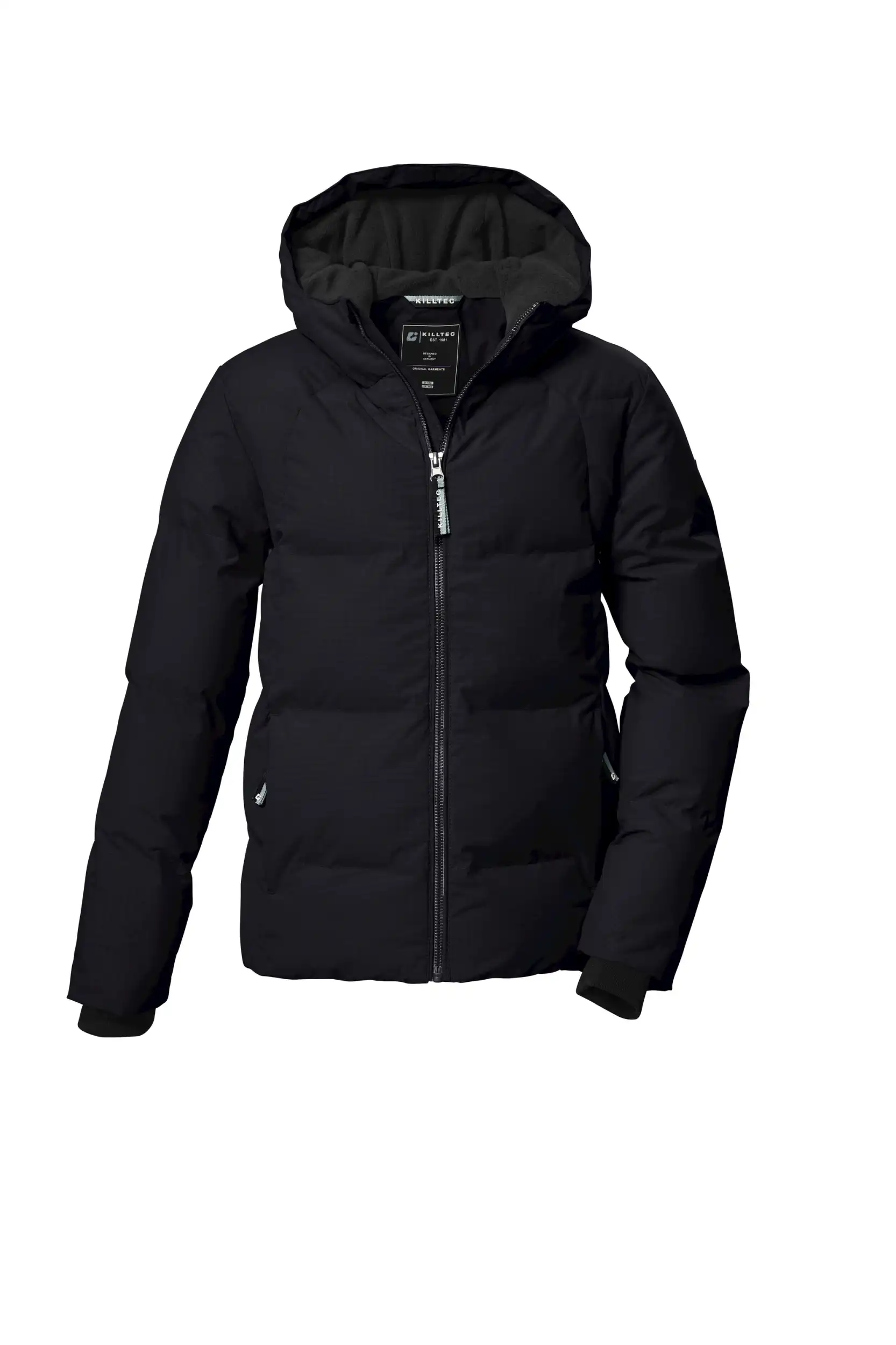 Die Mädchen Jacke in Daunenoptik mit Kapuze von killtec vereint stilvolles Design mit funktionalen Eigenschaften. Das hochwertige PU-Laminat und eine Wassersäule von 10.000 mm machen die Jacke wasserabweisend und windabweisend. Dank ihrer atmungsaktiven Eigenschaften bietet sie ein angenehmes Tragegefühl. Strickbündchen an den Ärmeln sorgen für zusätzlichen Komfort und schützen vor eindringender Kälte. Ein warmes Fleece im Rückenbereich gewährleistet wohlige Wärme. Die Kapuze mit Fleece-Einsatz ist nicht nur funktional, sondern setzt auch modische Akzente. Der Kinnschutz am Reißverschluss verhindert ein Einklemmen der Haut. Diese Jacke wurde mit fluorfreien Mitteln imprägniert.