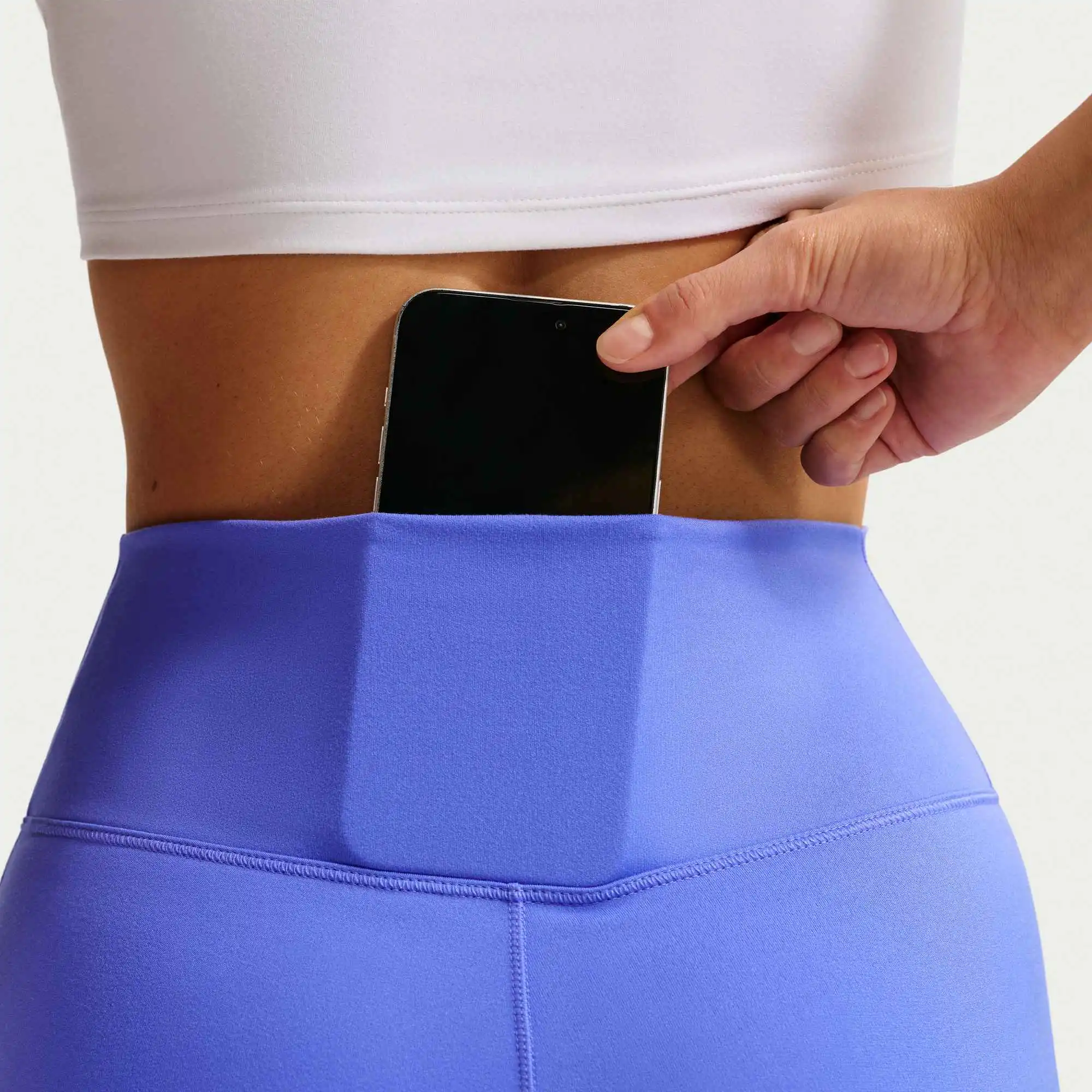 Nike One mit nahtloser Vorderseite Leggings in voller Länge mit hohem Bund für Damen Ob Workout oder Entspannung ? diese Leggings machen alles mit, was du dir vornimmst. Das mittelschwere, weiche Material passt sich an jede Bewegung an und trocknet schnell. Die nahtlose Vorderseite sorgt für einen perfekten Sitz und eine geschmeidige Passform. Die richtige Passform für jeden Geschmack Jeder Mensch ist einzigartig. Deshalb bieten wir diese Leggings in mehreren Längen an ? für jede Aktivität und jede Stimmung. Außerdem passen sie perfekt zu unseren Nike One Oberteilen und BHs, die in verschiedenen Farben erhältlich sind. Sicherer Sitz Dank des blickdichten Materials und des hohen Bunds scheint nichts durch, egal wie tief du dich beugst oder streckst. Weniger Nähte sorgen für eine bequeme, schmeichelhafte Passform. Nike Dri-FIT-Technologie leitet Schweiß von der Haut ab, wodurch er schneller verdunstet und du angenehm trocken bleibst. Die Tasche hinten eignet sich zur Aufbewahrung der meisten Smartphones.