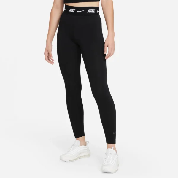 Mit der Nike Sportswear Club Leggings schlüpfen Sie in eine hochtaillierte Hose. Mit einem auffälligen Swoosh-Design und einem Bund mit sich wiederholendem Muster ist sie für ganztägigen Komfort gemacht.