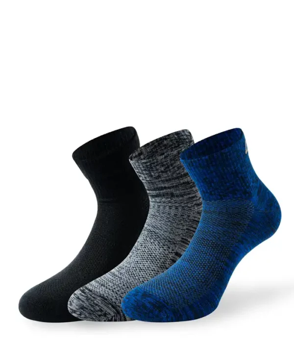 Die Kurzsocken in Quarter-Höhe sind die sportlichen Begleiter für jeden Tag. Der Materialmix aus Baumwolle und Polyamid macht die Socken pflegeleicht und angenehm zu tragen. Die Innensohle ist verstärkt und frottiert. Mesheinsätze an der Oberseite des Fußes machen die Socken besonders atmungsaktiv. Das weiche Komfortbündchen und die flache Zehennaht sorgen für druckfreien Halt.