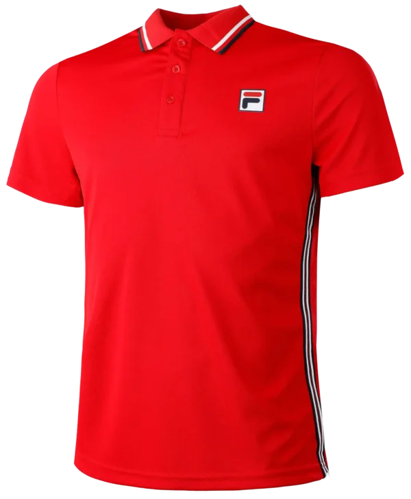 Dieses Polo erhält durch Streifen-Tapes in unseren Fila-Farben seine sportliche Note. Auf der Seitennaht und an den Armabschlüssen setzen die Streifen schöne Farbakzente, was sich durch die gesamte Kollektion zieht. Ein absolutes Muss bei sportlicher Betätigung und vielen Freizeitaktivität. Der hochfunktioneller Polyesterstoff gibt dir auch bei starker Hitze ein angenehmes Tragegefühl.