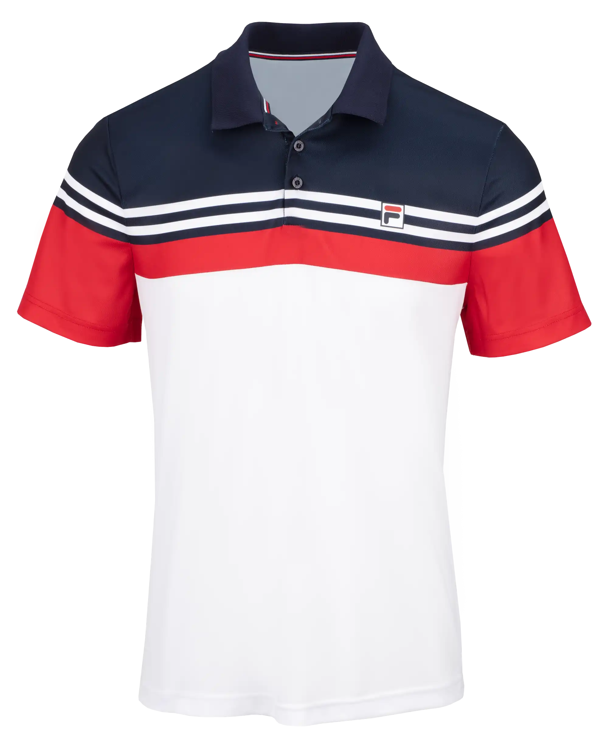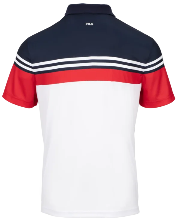 Polo Paul ist im Brustbereich farbig in unseren Filafarben gehalten. Der feinstrukturierte Stoff ist aus recycelten Rohstoffen hergestellt und angenehm auf der Haut zu tragen. Mit der passenden Shorts ein sportliches Outfit. Das F-Box-Logo ist auf der linken Brust.