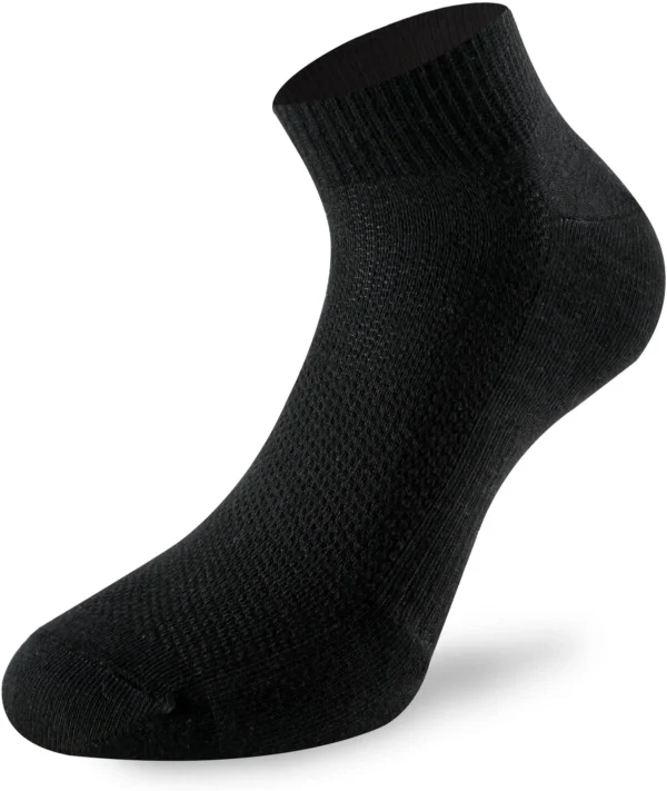 Der Running 3.0 ist der Allround-Sneaker-Laufsocken für wärmere Tage. Durch die 3D-Stricktechnik wird die Luftzirkulation verbessert. Verschiedene Polsterungen im Zehen- und Fersenbereich und die anatomische Zehenbox mit flachen Nähten sorgen für einen falten- und blasenfreien Sitz. Dabei geben die Ringbandage im Mittelfußbereich und das Aktivbündchen zusätzlichen Komfort.