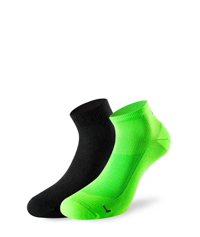 Der Running 3.0 ist der Allround-Sneaker-Laufsocken für wärmere Tage. Durch die 3D-Stricktechnik wird die Luftzirkulation verbessert. Verschiedene Polsterungen im Zehen- und Fersenbereich und die anatomische Zehenbox mit flachen Nähten sorgen für einen falten- und blasenfreien Sitz. Dabei geben die Ringbandage im Mittelfußbereich und das Aktivbündchen zusätzlichen Komfort.