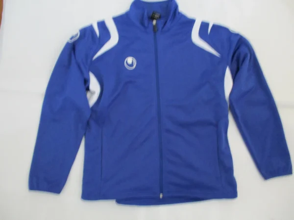 Die Uhlsport Trainingsjacke ist in blau weiss, atmungsaktiv, schnelltrocknend, pflegeleicht.