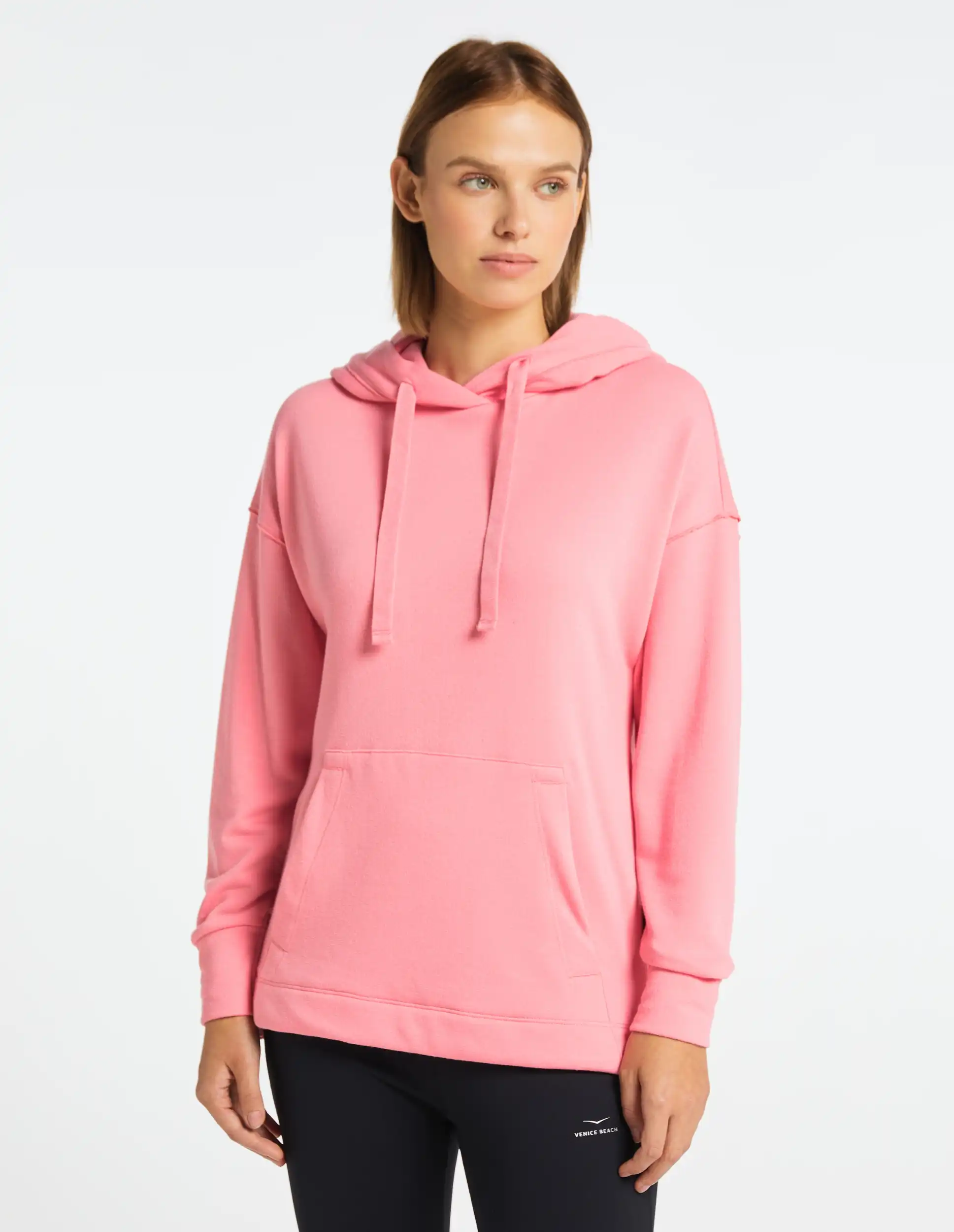 Zum Wohlfühlen: Der Hoodie LYNDSEY für Damen von VENICE BEACH. Der Hoodie LYNDSEY stellt Komfort und uneingeschränkte Funktionalität in den Mittelpunkt. Das Sweatshirt hat einen modernen Look und ist Activewear, die sich nicht nur beim Sport sehen lassen kann. Sie können den Pullover für Damen auch im Alltag sowie in der Freizeit bei allen Aktivitäten tragen. Daher sollte er in keinem Kleiderschrank von modebewussten Frauen fehlen, die einen gesunden Lifestyle pflegen. Außerdem besteht er aus kuschelig-weichem Material und wärmt Sie damit selbst bei kühleren Temperaturen. Der Kapuzenpullover für Damen liefert Ihnen zu jeder Gelegenheit die optimale Performance und Dynamik.