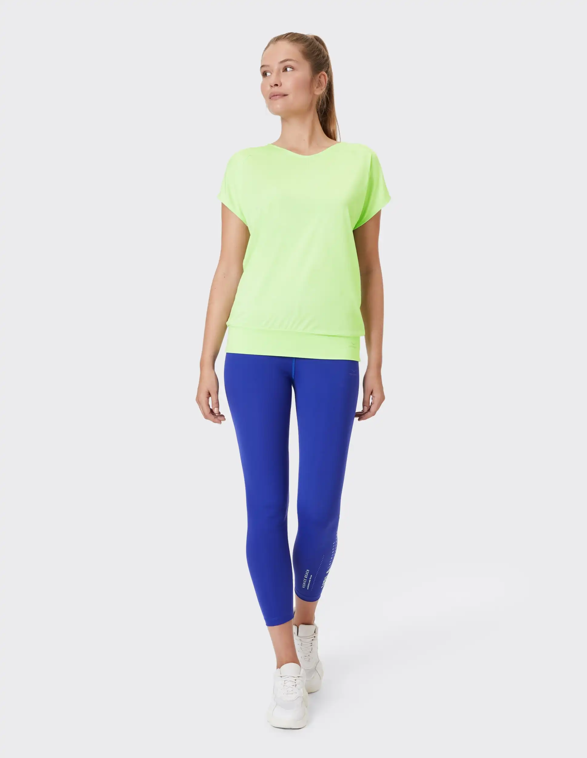 T-Shirt SUI für Damen mit weiter Schnittform und V-Ausschnitt: Funktionalität und Komfort für optimale Performance! Bequemer Schnitt, ideale Passform und viel Bewegungsfreiheit: All das zeichnet das T-Shirt SUI mit weiter Schnittform und V-Ausschnitt von VENICE BEACH aus. Ob cozy auf der Couch, beim schweißtreibenden Fitness-Training oder beim Brunch mit Ihrer besten Freundin. Als multifunktionelle Activewear überzeugt das T-Shirt für Damen auf ganzer Linie. Das hochwertige Material fühlt sich hervorragend weich auf der Haut an. Für ein Training ohne Grenzen transportiert es beim Sport die Feuchtigkeit vom Körper weg und hält bei kühleren Temperaturen angenehm warm. Das T-Shirt SUI liefert optimale Performance sowie Dynamik und ist somit die perfekte Wahl für jede sportliche Herausforderung. Das T-Shirt für Damen vereint nicht nur Funktionalität und Komfort, auch der Look ist modern. Inspiriert vom Flair des legendären Strandes in Los Angeles ist das Shirt beim Training und im Alltag sowie in der Freizeit ein modisches Highlight.