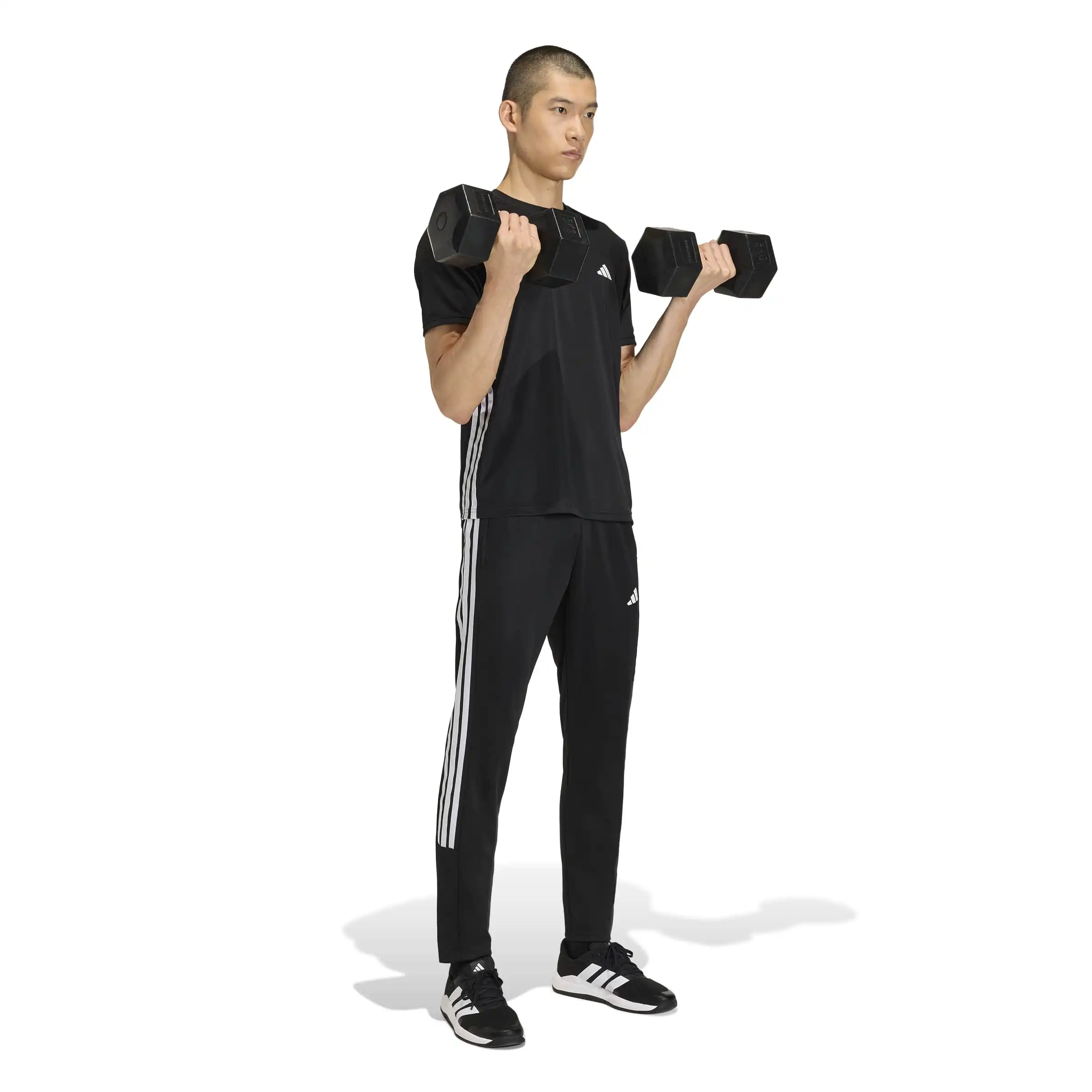 Wenn es ums Training geht, dreht sich bei der Workout Essentials All-Set 3-Streifen Hose aus Strick-Material alles um Komfort und Leistung. Diese Hose wurde für diejenigen entwickelt, die nach Erfolg streben, und ist deine erste Wahl für Trainingseinheiten. Diese Hose mit dem kultigen Branding und den 3-Streifen entlang der Seiten kombiniert nahtlos Stil und Funktionalität. Das Doppelstrickmaterial ist atmungsaktiv und strapazierfähig und macht das Modell zu einem Must-have für anspruchsvolle Trainingsprogramme. Die integrierte Climacool Technologie leitet den Schweiß ab und gewährleistet ein kühles und trockenes Tragegefühl ? keine Ablenkung, nur Performance. Schnell trocknende Fasern sorgen dafür, dass du dich wohl fühlst, damit du bei intensiven Trainingseinheiten frisch und konzentriert bleiben kannst. Die Hose mit der regulären Passform und dem schmal zulaufenden Bein bietet eine schlanke Silhouette, die sich mit dir bewegt. Der voll elastische Bund gewährleistet sicheren Halt, während die seitlichen Reißverschlusstaschen dafür sorgen, dass du deine wichtigsten Utensilien immer griffbereit hast. Ganz gleich, ob du ins Fitnessstudio gehst oder eine Runde joggst, diese Hose aus Strick-Material macht all deine Bewegungen mit. Bei adidas geht es um mehr als nur um Sportswear. Es ist ein Lifestyle.