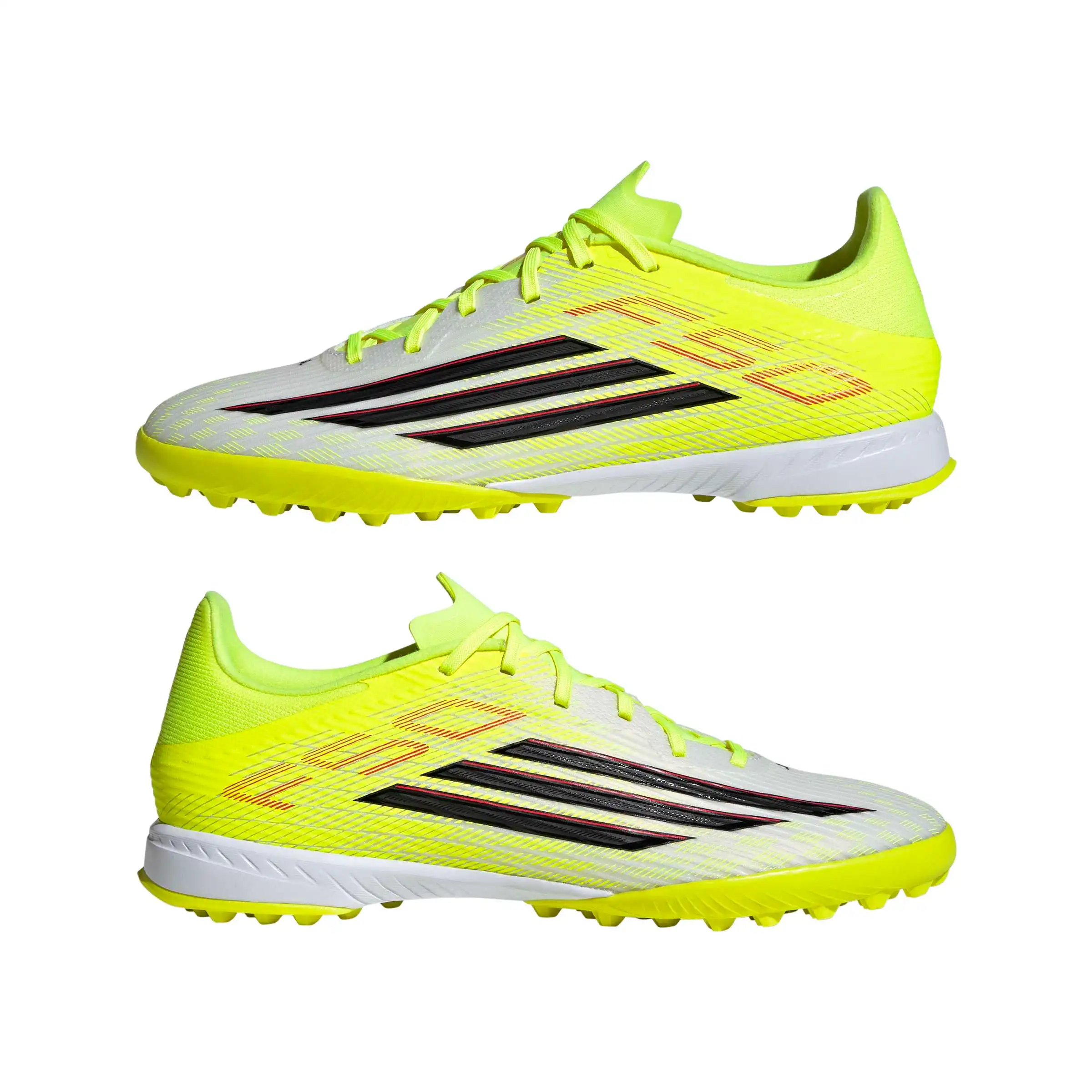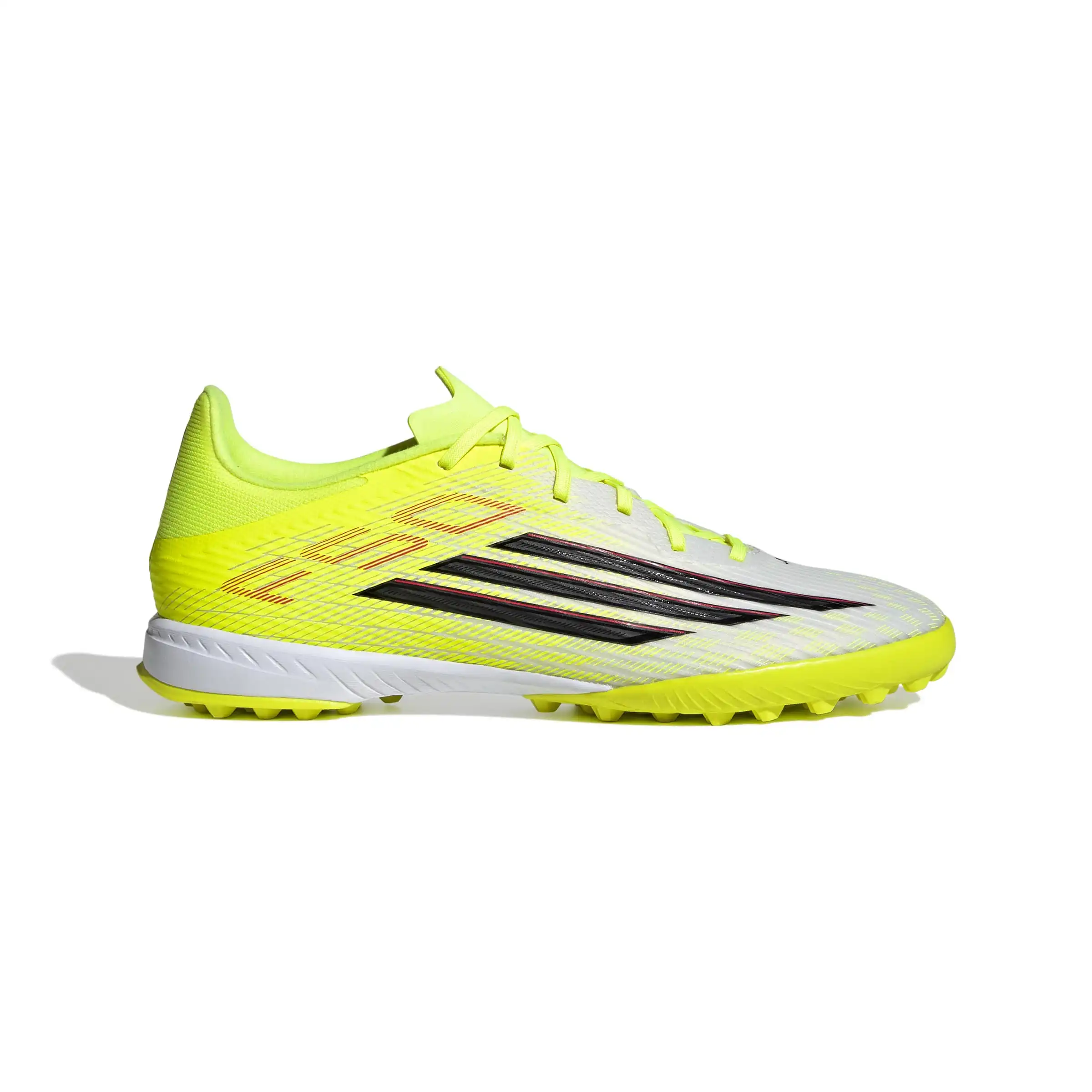 Mit dem F50 League Turf Fußballschuh kannst du bahnbrechende Geschwindigkeit entfesseln. Er wurde für alle entwickelt, die für den Nervenkitzel des Spiels leben, und kombiniert ein leichtes Tragegefühl mit präziser Technik. Erlebe einen sicheren, passgenauen Sitz dank der dehnbaren Tunnel-Zunge, die selbst bei hohem Tempo zuverlässigen Halt bietet. Die reaktionsfreudige EVA-Zwischensohle sorgt für zusätzlichen Komfort, während die Gummiaußensohle auf Kunstrasen und künstlichen Belägen effektiven Grip liefert. Das Fiberskin Obermaterial mit strategisch platzierten 3D-Linien ist strapazierfähig und gewährleistet zuverlässigen Ballkontakt. Der Sprintgrid 2D-Mudguard-Print greift optisch Designelemente von Topmodellen auf und verleiht dem Schuh einen auffälligen Look. Dieser Schuh mit Adidas Branding und dem legendären F50 Logo steht für Geschwindigkeit und Leistung. Ob beim Training oder am Spieltag, dieser Schuh ist dein idealer Begleiter auf dem Spielfeld.