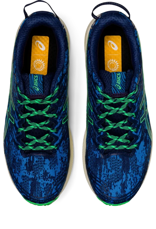 - Innovatives Mesh-Obermaterial verbessert die Atmungsaktivität Mindestens 50 % des Obermaterials des Schuhs besteht aus recycelten Materialien, um Abfall und CO2-Asstoß zu reduzieren Die Einlegesohle wird mit einem Lösungsfärbeverfahren hergestellt, das den Wasserverbrauch im Vergleich zur herkömmlichen Färbetechnologie um ca. 33 % und den CO2-Asstoß um ca. 45 % reduziert Reflektierende Details für mehr Sichtbarkeit Die ?Schnürsenkel-Garage" in der Zunge ermöglicht es der Trägerin oder dem Träger, die Schnürsenkel zu verstauen, sodass sie sich beim Laufen nicht lösen oder irgendwo verhaken können. Die FLYTEFOAM?-Dämpfung besteht aus Cellulose-Nanofasern, einem biobasierten Material, das als ein Bestandteil in der Mittelsohle dieses Schuhs verarbeitet wird. Die ASICSGRIP?-Außensohle sorgt für bessere Bodenhaftung und Strapazierfähigkeit sowohl auf nassen als auch auf trockenen Wegen.
