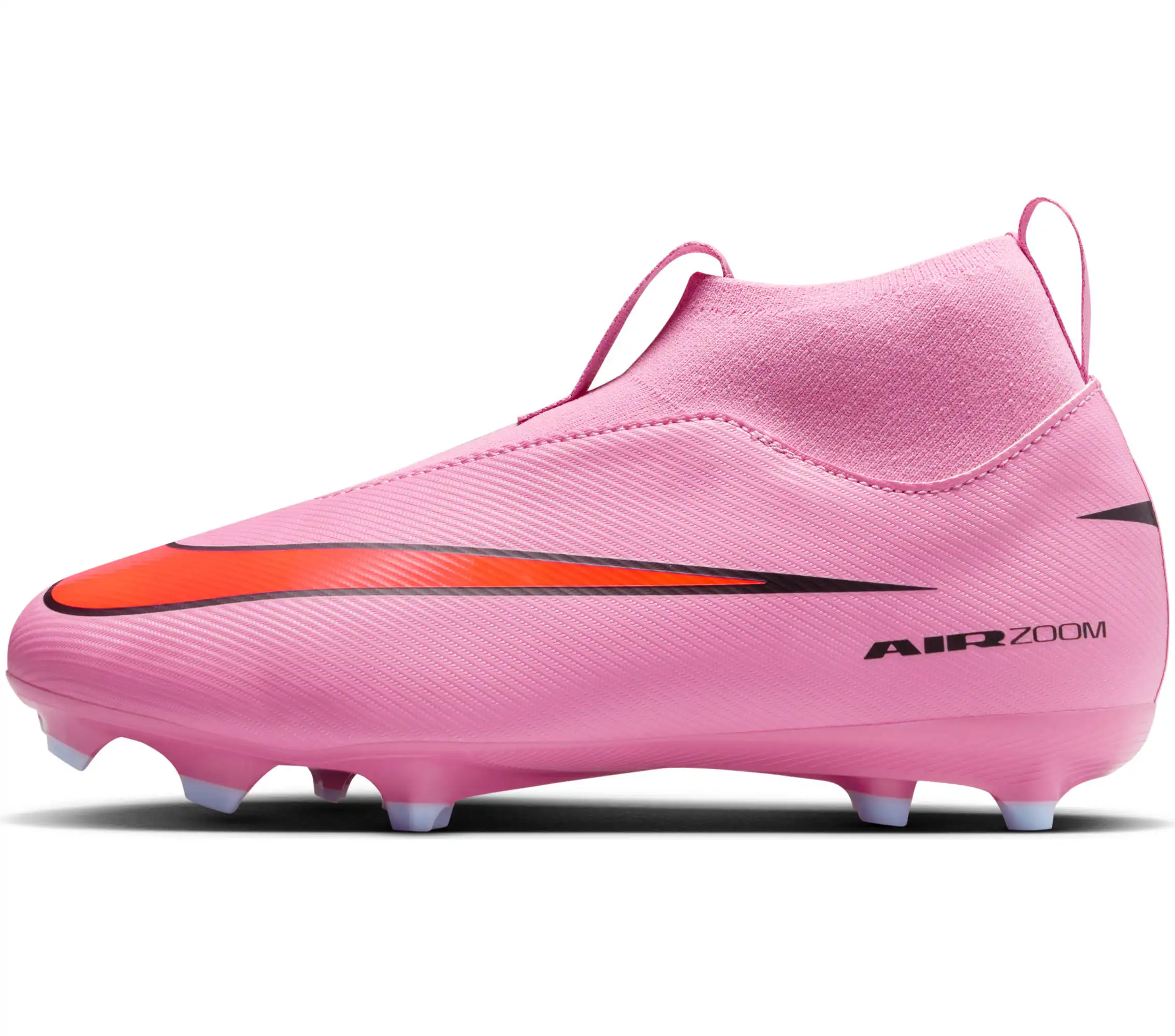 Nike Jr. Mercurial Superfly 10 Academy MG High-Top-Fußballschuh (jüngere/ältere Kinder) Du möchtest noch schneller unterwegs sein? Wir haben diese Academy Fußballschuhe mit einem verbesserten Air Zoom-Element in der Ferse ausgestattet. Es gibt dir den Antrieb, den du brauchst, um die hintere Linie zu durchbrechen. Das Ergebnis ist der reaktionsfreudigste Mercurial, den wir je entwickelt haben. Damit kannst du Tempo geben und den nächsten Hattrick anvisieren. Noch besseres Ballgefühl Das Obermaterial besteht aus NikeSkin mit eingebetteten Chevrons, die für Ballkontrolle sorgen und dir ein barfußähnliches Fußballgefühl vermitteln. Schnelle Traktion Das wellenförmige Traktionsmuster besteht aus einer Reihe von kaskadierenden Stollen, die die Oberfläche des Air Zoom-Elements vergrößern und gleichzeitig zuverlässigen Grip geben. Sicherer Halt, bequemer Sitz Fersenschlaufen und ein Riemen machen Schnürsenkel überflüssig und sorgen dafür, dass du schnell auf dem Spielfeld bist. Wir haben das elastische Mesh der vorherigen Generation zu einem anpassungsfähigen Strickmaterial verbessert, das extra Flexibilität und Halt bietet und dich näher an den Ball bringt. Ein Dynamic Fit-Schuhkragen aus weichem, elastischem Material umschließt den Knöchel und sorgt so für ein sicheres Tragegefühl. More Details
